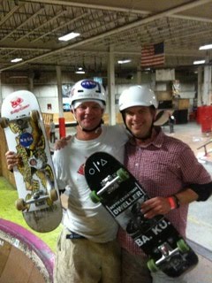 So the Achievement First Teach-In last night, from 7 to 9, butted up against my regular Wednesday night 9-11 skate session at Skaters Edge. I figured I'd just haul ass up there after the meeting and burn off all the extraneous tension. About 4 guys in their 30's who I hadn't skated with before were sessioning the bowl. I started padding up and left my button-up shirt on because I had already put my helmet on.