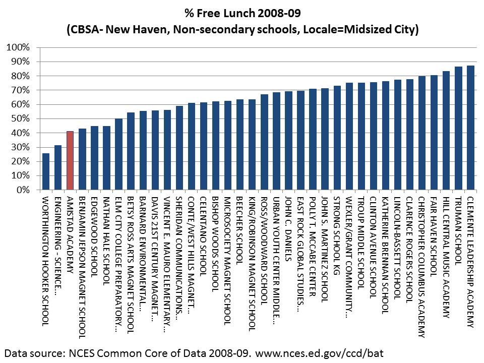 Gordon MacInnes and Bruce Baker have written convincingly about the problems with using free and reduced lunch eligibility to compare urban schools. Families below 130% of the federal poverty rate are eligible for free lunch; under 180% for reduced price lunch. These are almost always lumped together in publicly reported statistics, including those offered by RIDE.