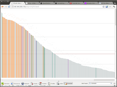 So... how does this play out in Rhode Island? You can get school by school numbers split out between free and reduced from the federal Common Core of Data (with 2009 - 2010 data most recent), and I've started working on a data graphic (which is by no means done), but the initial results are, well, a lot more lucid than I would have thought. It is all so tidy that I feel like I should chalk it up at least in part to coincidence, and while what follows is not a rigorous or authoritative statistical analysis, it should make a lot of sense to people with some familiarity with these schools. I certainly feel like I have a much clearer and more coherent mental model of what is going on now with urban schools in RI, charter and otherwise, than I did a couple days ago. So, with that preamble/disclaimer out of the way...